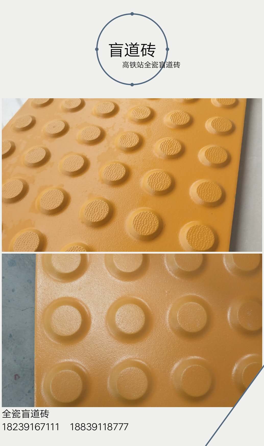 全瓷盲道磚、止步磚等產(chǎn)品具有規(guī)格齊全、色澤純正醒目、美觀大方、耐磨度高、抗低溫、抗沖擊等特點(diǎn),廣泛適用于火車站、地鐵、體育場館、城建等公共場所。本產(chǎn)品已在北京西站、南站,鄭州西站擴(kuò)建工程廣泛使用。