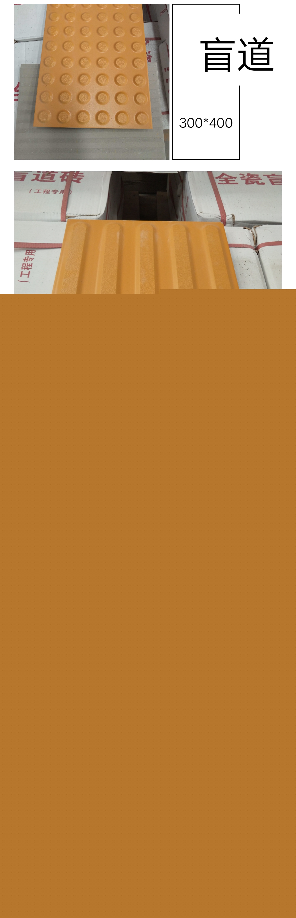 我們的盲道磚是全瓷的,不是塑膠的,也不是水泥,而且尺寸是經(jīng)過修邊的,不要害怕有誤差,厚度也達(dá)標(biāo)的,顏色是不會(huì)掉色脫色的,還有什么疑問直接拿起電話咨詢!18839118777